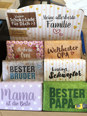 Wie wärs mit feiner Schokolade, lustigen Gummibärchen oder Mints Döschen mit frechen Sprüchen?